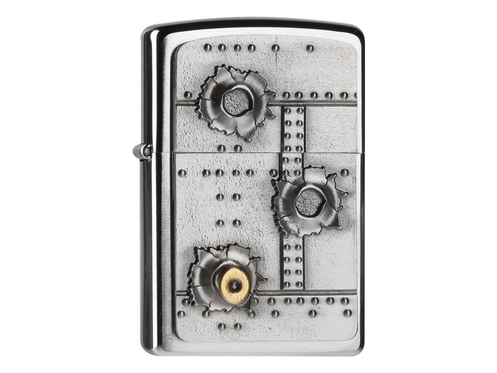 Benzínový zapalovač Zippo s výrazně plastickým emblémem na přední straně. Nejedná se o optický klam, ale motiv střel skutečně vystupuje z povrchu. Krásně propracovaný zapalovač s perfektními detaily. Zadní strana je z broušeného chromu a je vhodná pro dodatečné gravírování.