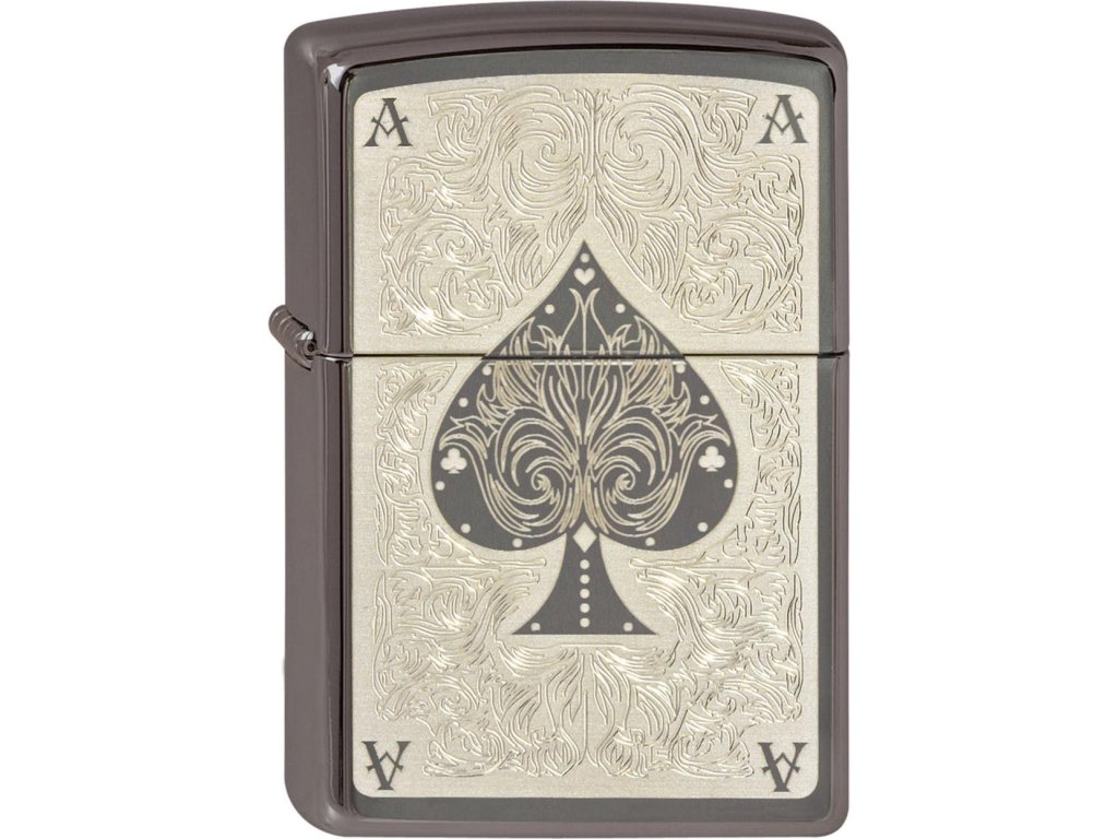 Velmi populární model Zippo zapalovače s krásným gravírováním na přední straně - karetní motiv z kolekce Gambling.