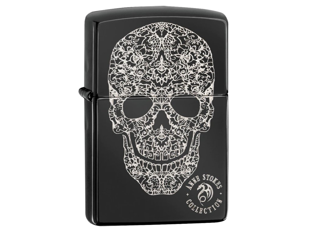 Další model z edice od Anne Stokes. Zippo zapalovač s povrchem Ebony a s vygravírovanou lebkou přes přední stranu. Zadní stranu lze doplnit o rytí na přání.