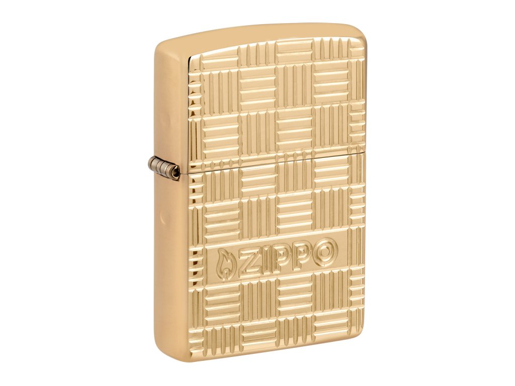 Elegantní Zippo zapalovač Armor® s vysokým leskem mosazi přináší harmonický design inspirovaný tradičním košíkovým vzorem. Precizně gravírovaný povrch technikou Deep Carve vytváří dokonale symetrickou texturu, která podtrhuje luxusní charakter tohoto prémiového Zippo zapalovače. Čelní plocha je ozdobena klasickým logem Zippo, které umocňuje jeho autenticitu. Zapalovač je dodáván v dárkové krabičce jako dokonalý dárek pro milovníky designových doplňků. Pro maximální výkon se doporučuje použít originální Zippo benzín.