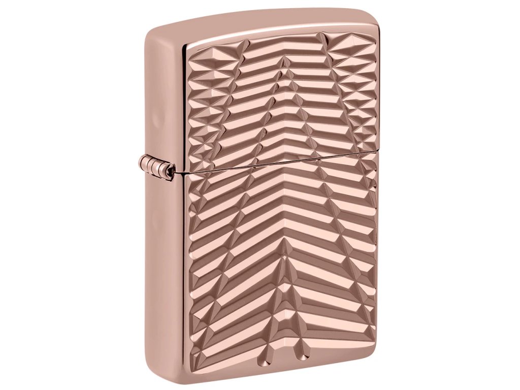 Zippo Armor® High Polish Rose Gold není obyčejný zapalovač, ale skutečný designový klenot. Lesklý povrch v barvě růžového zlata působí elegantně a zároveň odvážně. Precizní Deep Carve gravírování vytváří plastický geometrický vzor, který okamžitě zaujme na první pohled.