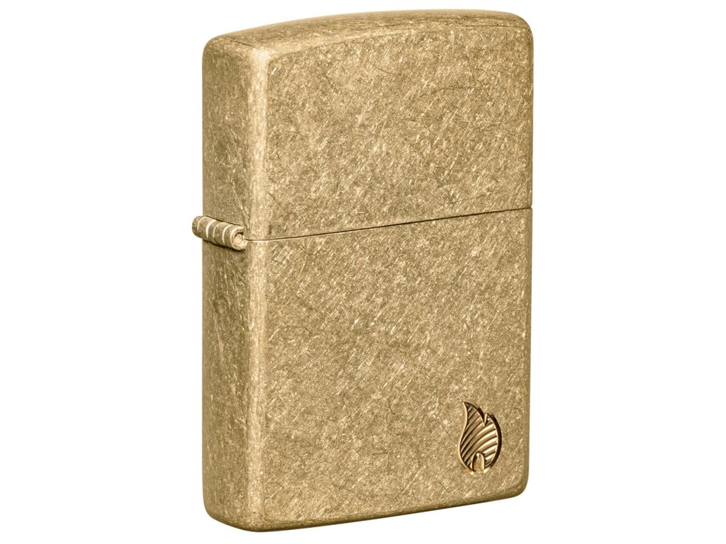 Tento zapalovač Armor® Tumbled Brass dodá Vaší sbírce nádech decentního luxusu. V pravém dolním rohu se objevuje klasická ikona plamene Zippo v minimalistickém designu Deep Carve.