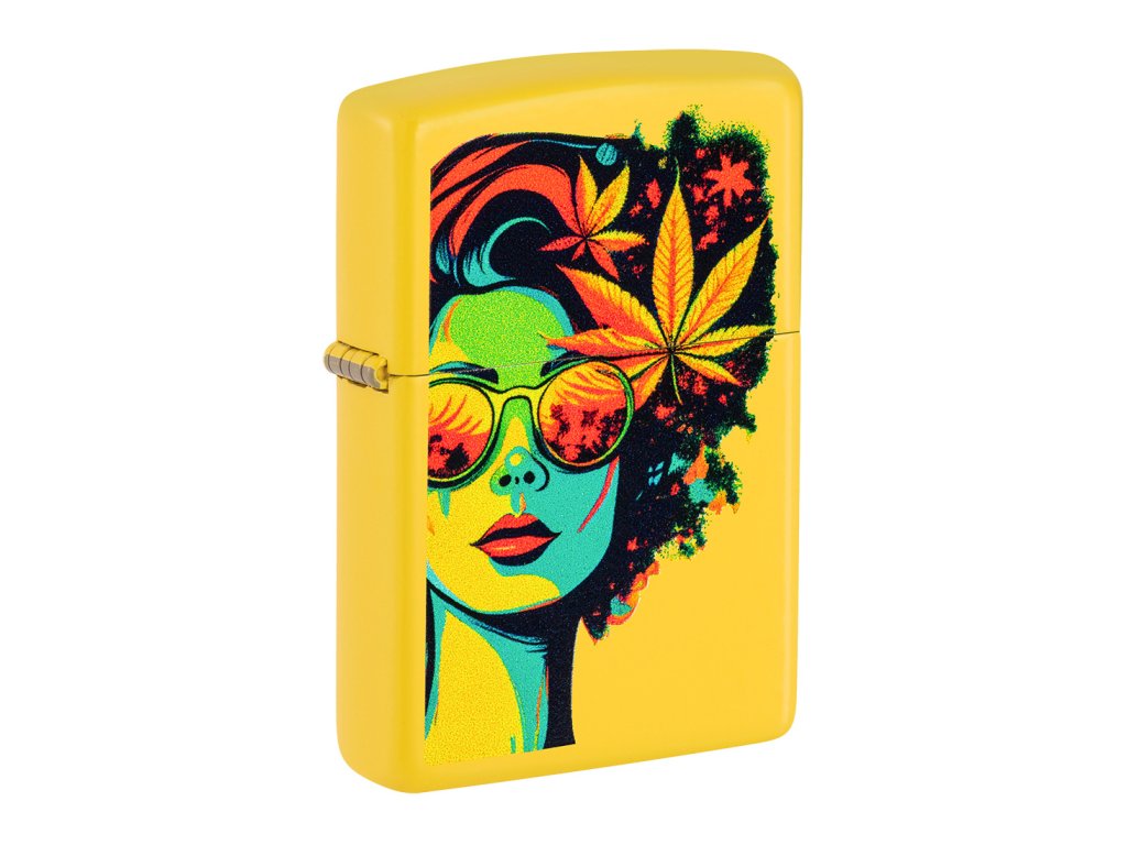 Základ v energické slunečnicově žluté barvě poskytuje perfektní plátno pro detailní a zářivý motiv hipsterského znalce konopí, vytvořený technologií Color Image. Tento jedinečný zapalovač spojuje styl s klasikou a je dodáván v elegantní dárkové krabičce.