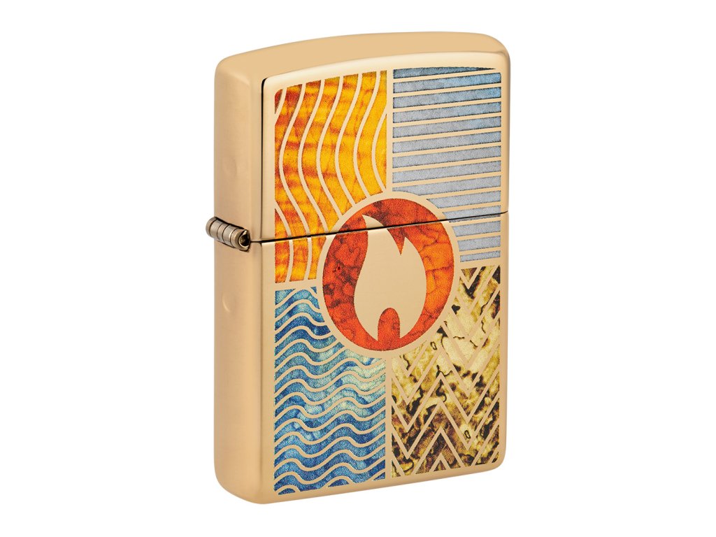 Elegantní Zippo zapalovač v provedení High Polish Brass je skutečným mistrovským dílem. Uprostřed září ikonický plamen Zippo, který je obklopen fascinující mozaikou symbolizující čtyři živly: Zemi, Vítr, Oheň a Vodu. Design je vytvořen technologií Fusion, která zapalovači propůjčuje oslnivý a třpytivý efekt, čímž dodává celkovému vzhledu neobyčejnou hloubku a šarm.