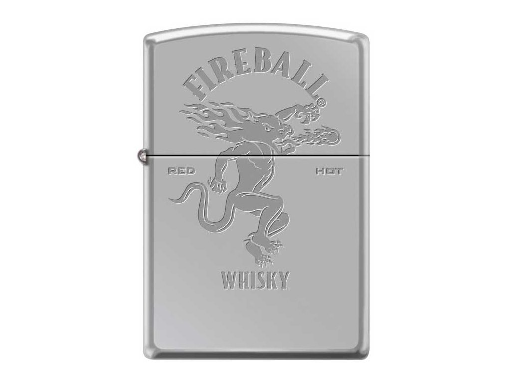 Zippo zapalovač vyrobený ve spolupráci s Fireball Whisky- Zapalovač má hladký povrch z leštěného chromu. Dodáván v dárkové krabičce.