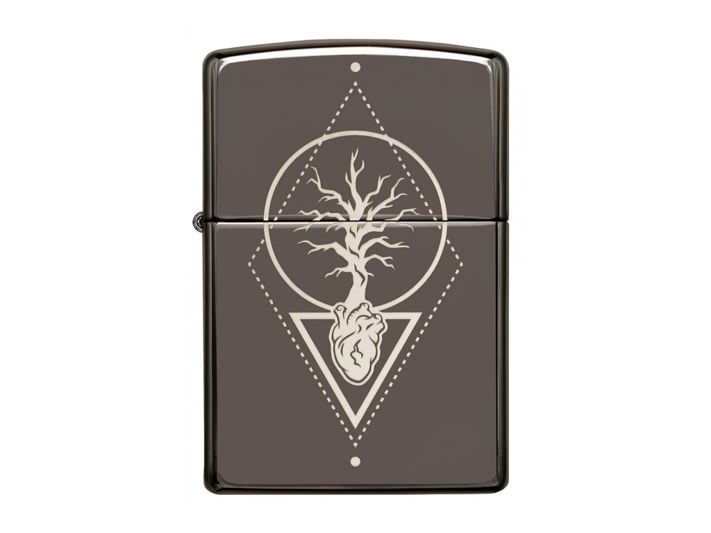 Zippo zapalovač s motivem srdce a stromu života na leštěném povrchu Black Ice. Na zadní stranu je možné umístit vlastní gravírování, které provedeme do 24 hodin.