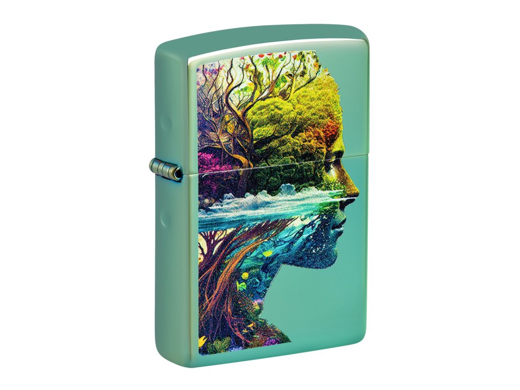 Tento zapalovač Zippo s povrchem High Polish Green přináší poetické spojení přírody a lidské podoby. V lesklém zeleném provedení ožívá scénérie lesa vytvořená barevnou technologií Color Image (odolný potisk), která působí klidně a zároveň originálně. Kombinace přírodního motivu a vysokého lesku dává zapalovači výjimečný vzhled.