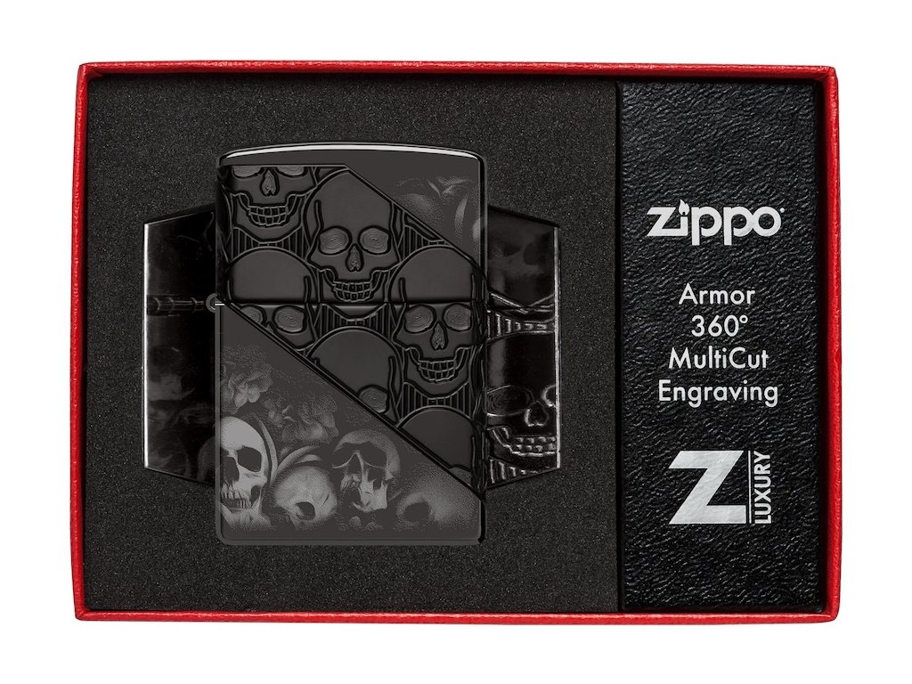 Tento mrazivě temný Zippo Armor® zapalovač v provedení High Polish Black přináší jedinečné MultiCut gravírování v kombinaci s tajemným 360° Photo Image designem. Díky extra silnému kovovému tělu je až 1,5× robustnější než běžné Zippo zapalovače, což zaručuje vyšší odolnost a jedinečný pocit v ruce.
