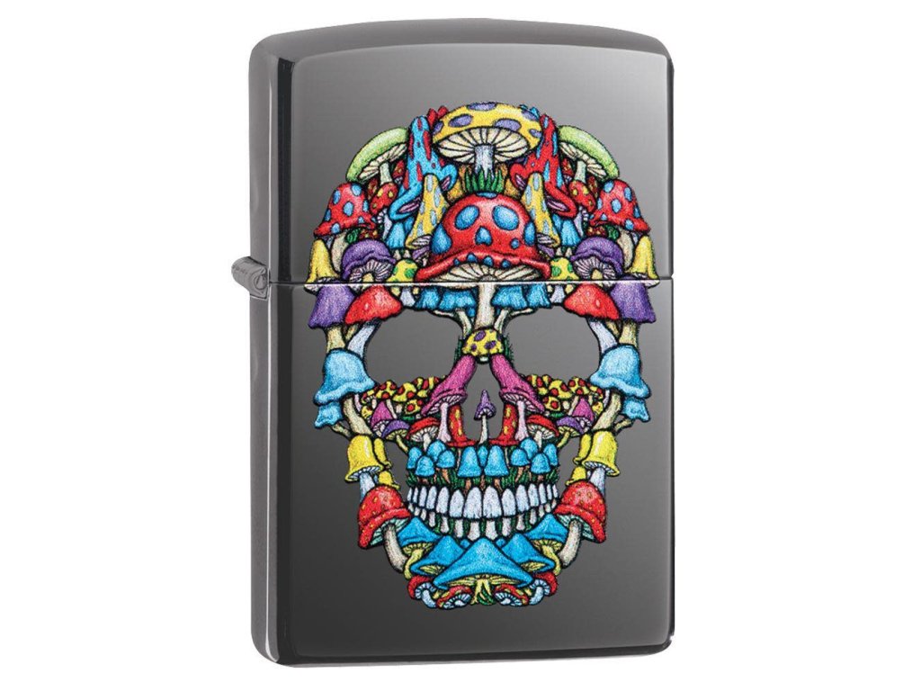 Psychedelická lebka zdobí tento Zippo zapalovač s leštěným povrchem Black Ice. Zadní stranu lze opatřit zakázkovým gravírováním s vyhotovením do 24 hodin.