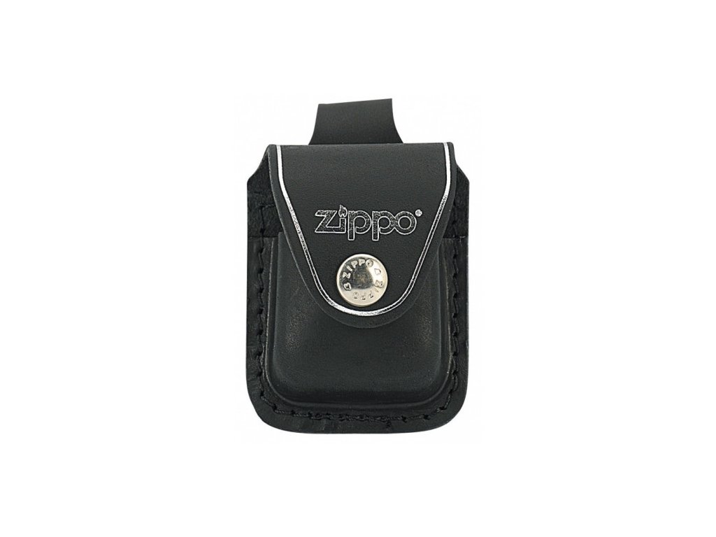 Černá varianta pouzdra na Zippo s poutkem. Poutka má zapínání na kovový patent a lze jej připevnit na opasek o šíře až 5 centimetrů. Originální produkt Zippo.